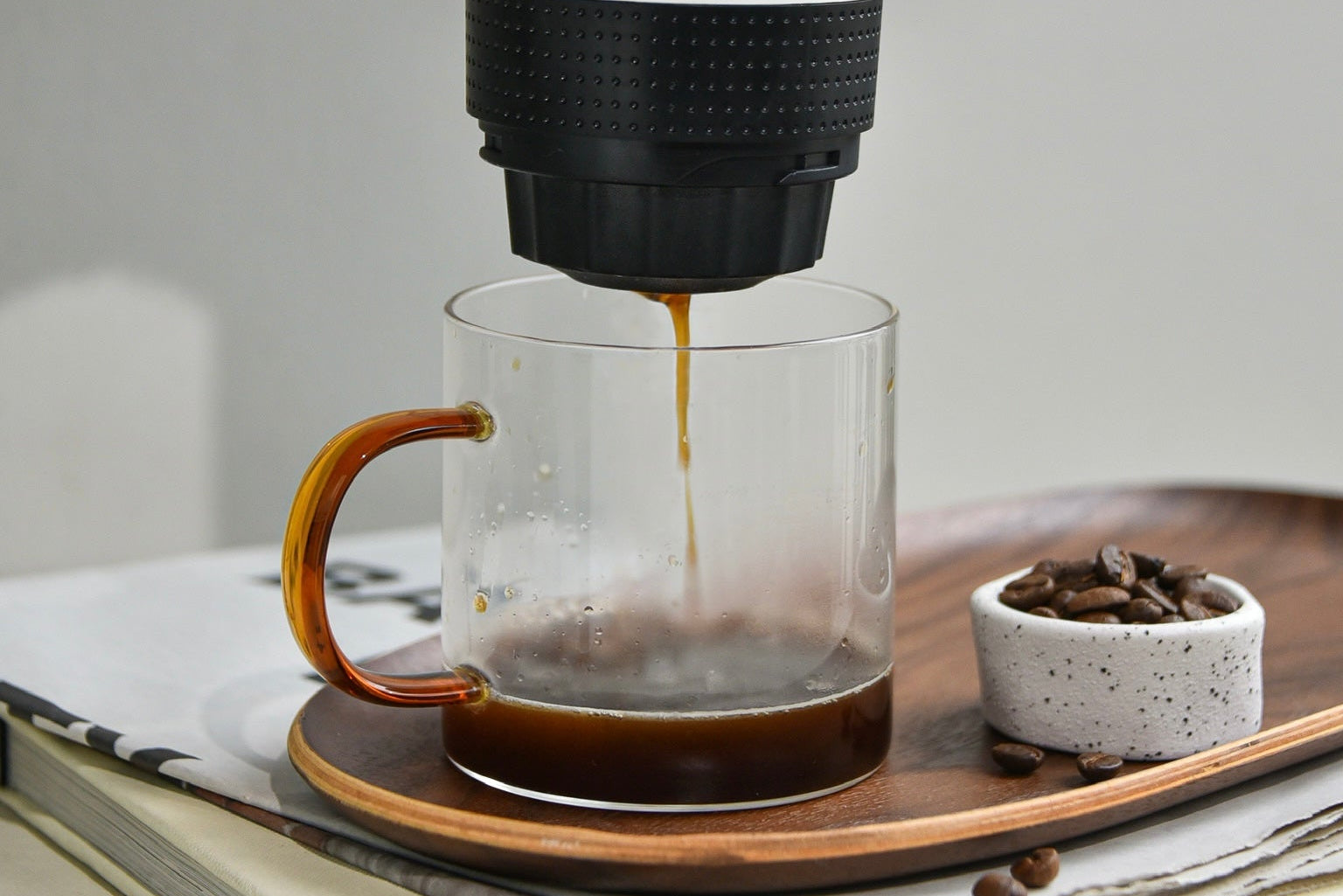 Savourez un café digne d’un barista, où que vous soyez, grâce à l’Expresso Bottle. Compacte, élégante et performante, elle chauffe l’eau et extrait le café (moulu ou en capsules) en un clin d’œil. Que ce soit à la maison, au bureau, en voiture ou en plein air, profitez de chaque moment avec un café parfait.
